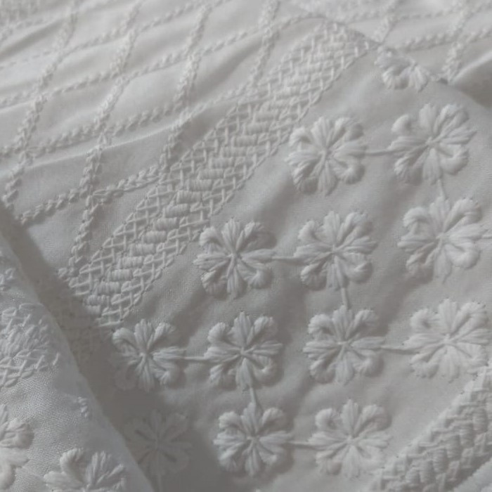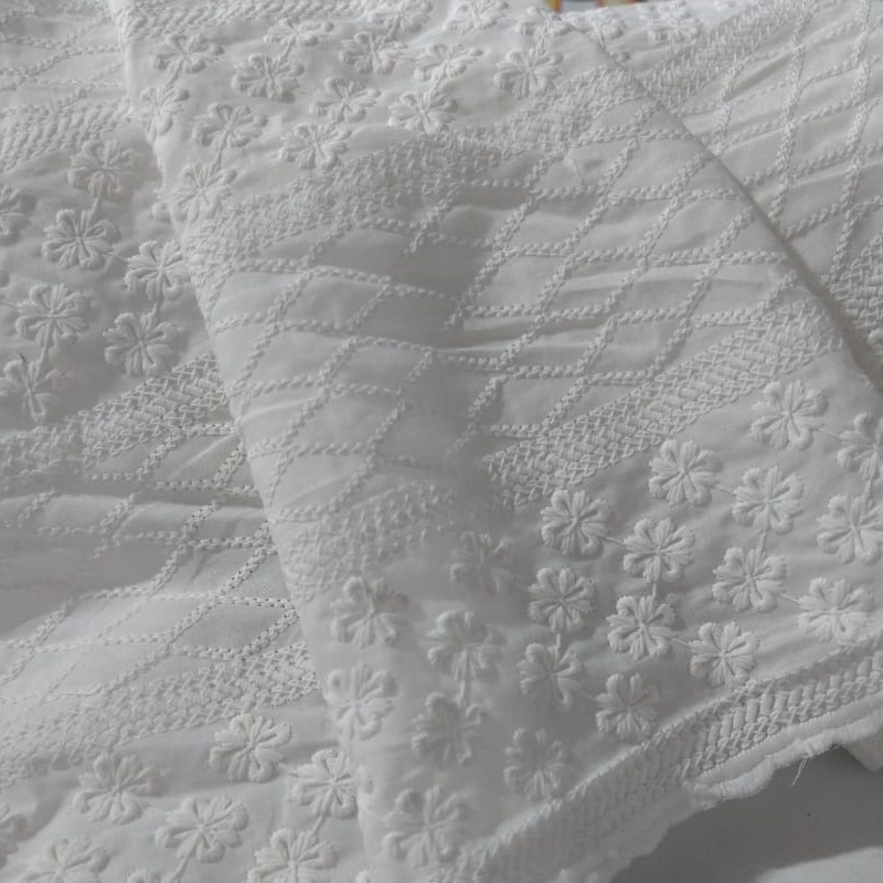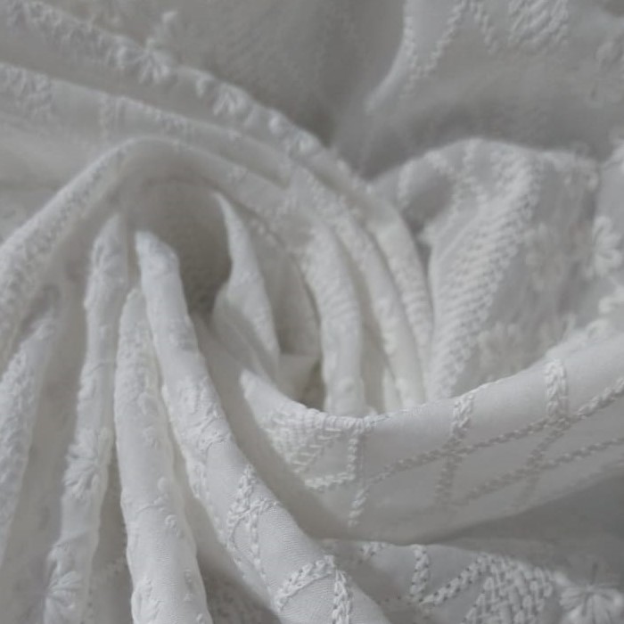 Tecido de algodão, com desenhos modelados em alto relevo. Como possui essa composição costuma ser um tecido fresco e leve. Usado para blusas, batas, saias e vestidos, de diversos modelos. Mas atualmente ganhou uma nova proposta, no uso de máscaras, a deixando com grande charme e sem esquecer a proteção.