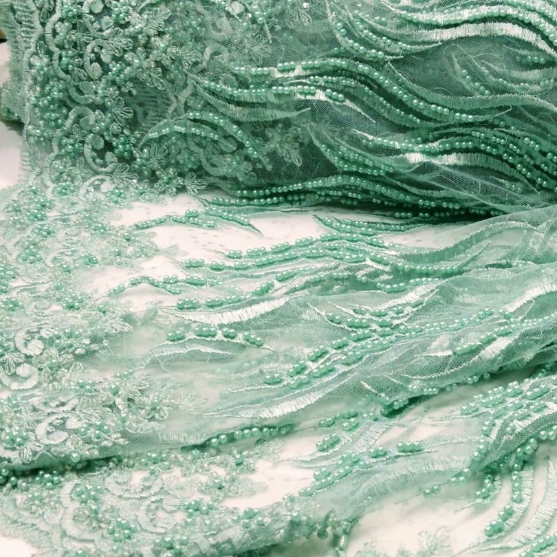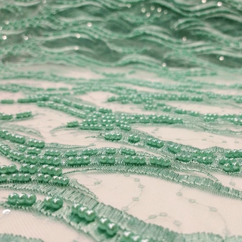 Tecido Tule Bordado Arabesco Com Floral Verde Água